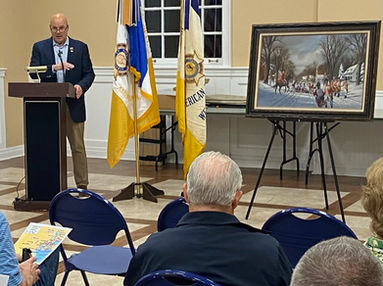 While the New Jersey Society Sons of the American Revolution meets, sponsors, and participates in events throughout the year, the West Fields Chapter itself meets three to four times annually. A March meeting typically includes a banquet with awards presentations and a featured speaker. Meetings generally include presentations on topics of particular interest to our members. Professional historians, reenactors, and chapter members are all welcome to present on subjects related to the American Revolution and their own specific interests. Recent topics have included the Battles of Connecticut Farms and Springfield, a historic mural depicting the Battle of Spanktown that once hung in a Rahway bank, a biographical presentation on Brigadier General Charles Lee, and the experiences of Black soldiers in the Continental Army. Announcements of each meeting are sent to members in advance and are also publicized online.